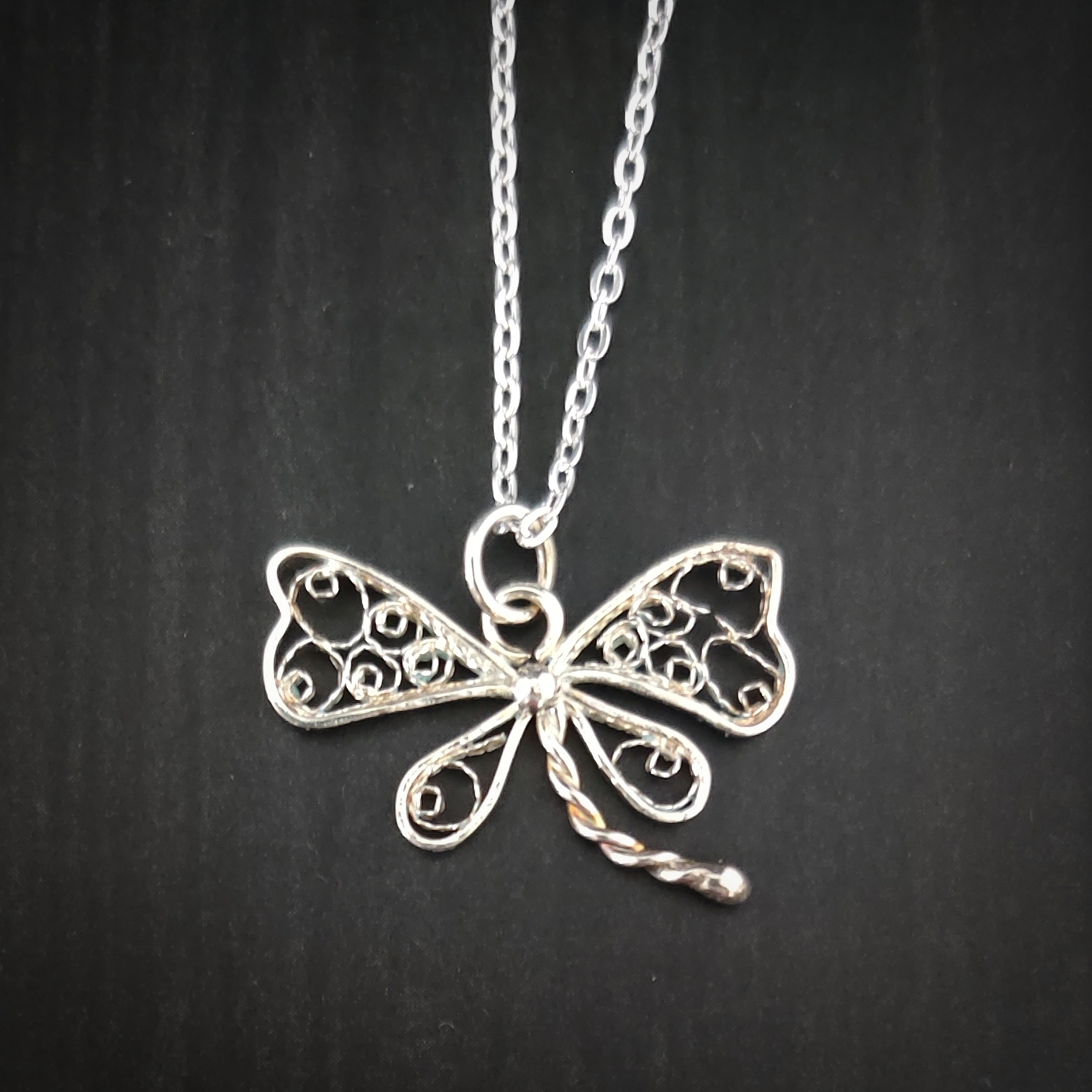 Le motif de libellule stylisée se distingue par ses lignes aériennes et son style élégant. Le filigrane d’argent 925, travaillé à la main, apporte légèreté et finesse, faisant de chaque pendentif une pièce unique et originale.