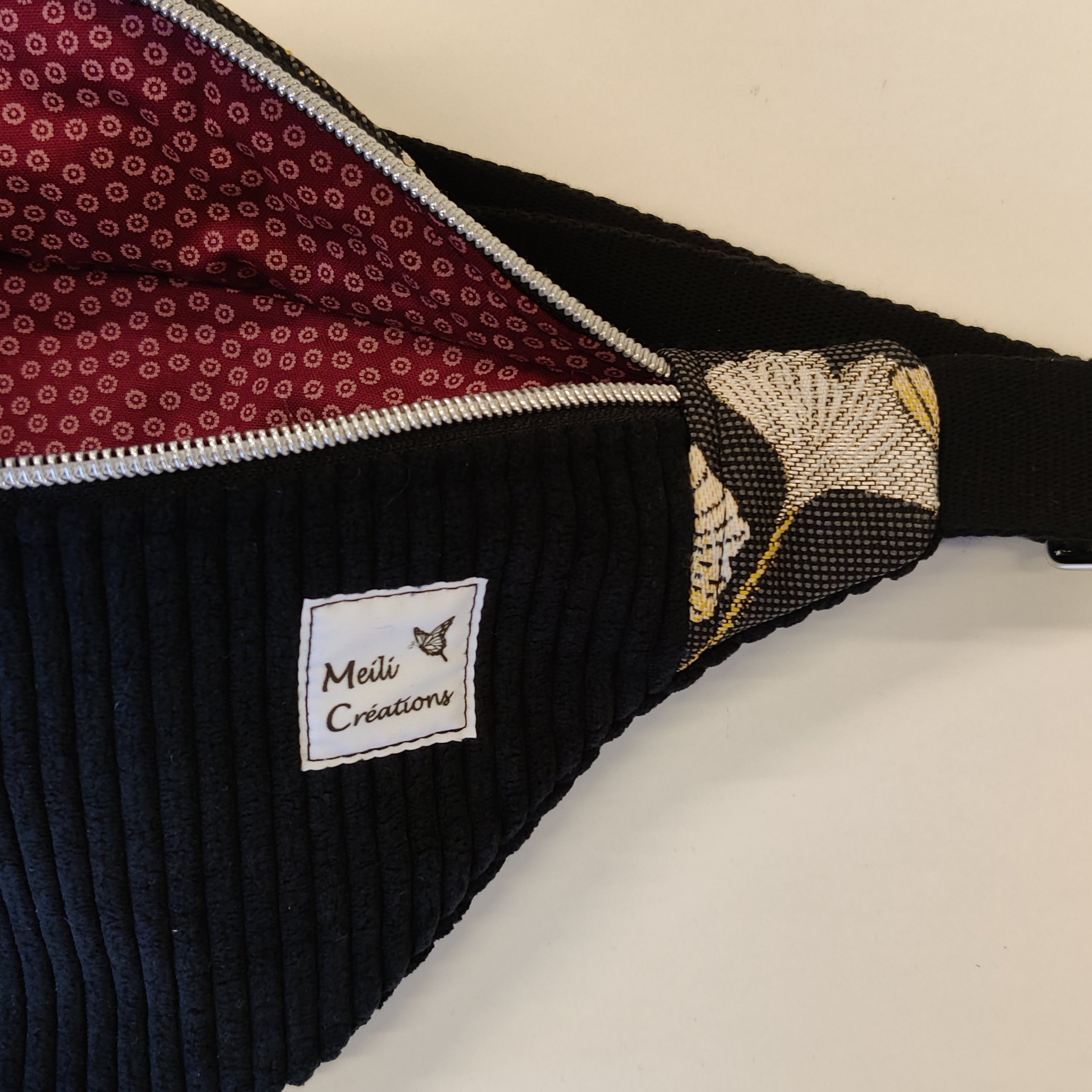 Chaque pièce est réalisée avec soin dans mon atelier, garantissant un accessoire unique et durable. Le velours côtelé offre une texture douce et résistante, tandis que le motif ginko en jacquard souligne l’attention portée aux détails et au savoir-faire artisanal.