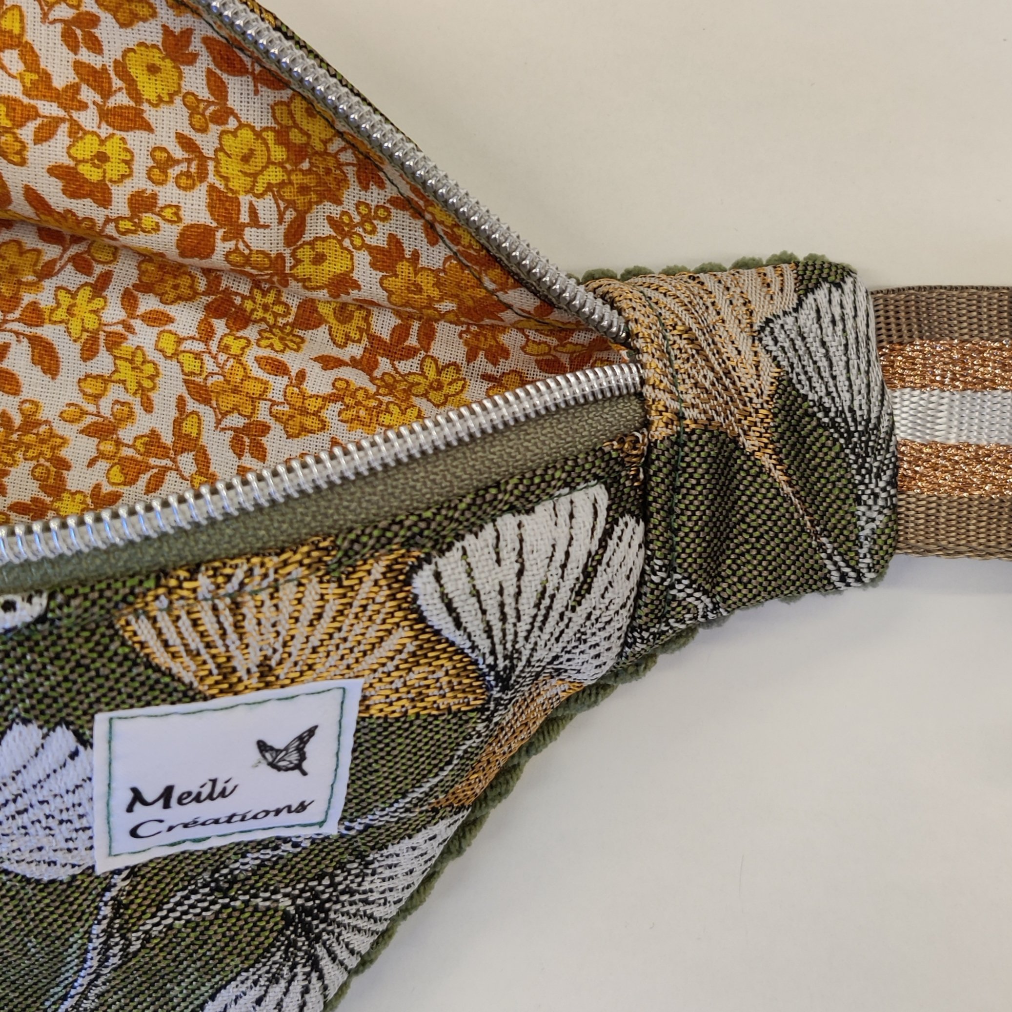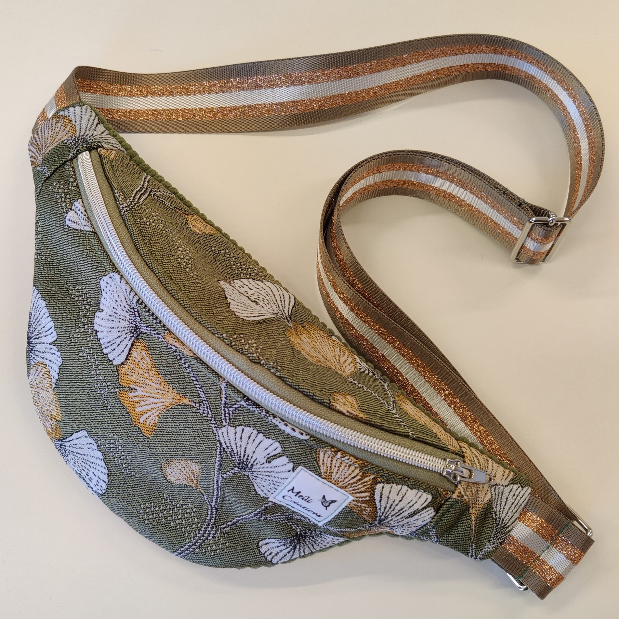 Chaque modèle est confectionné avec soin dans mon atelier, garantissant un accessoire unique et durable. Le velours côtelé et le jacquard apportent confort et robustesse, tandis que le motif ginko révèle l’attention portée aux détails. Ainsi, vous bénéficiez d’une banane à la fois pratique, originale et artisanale.