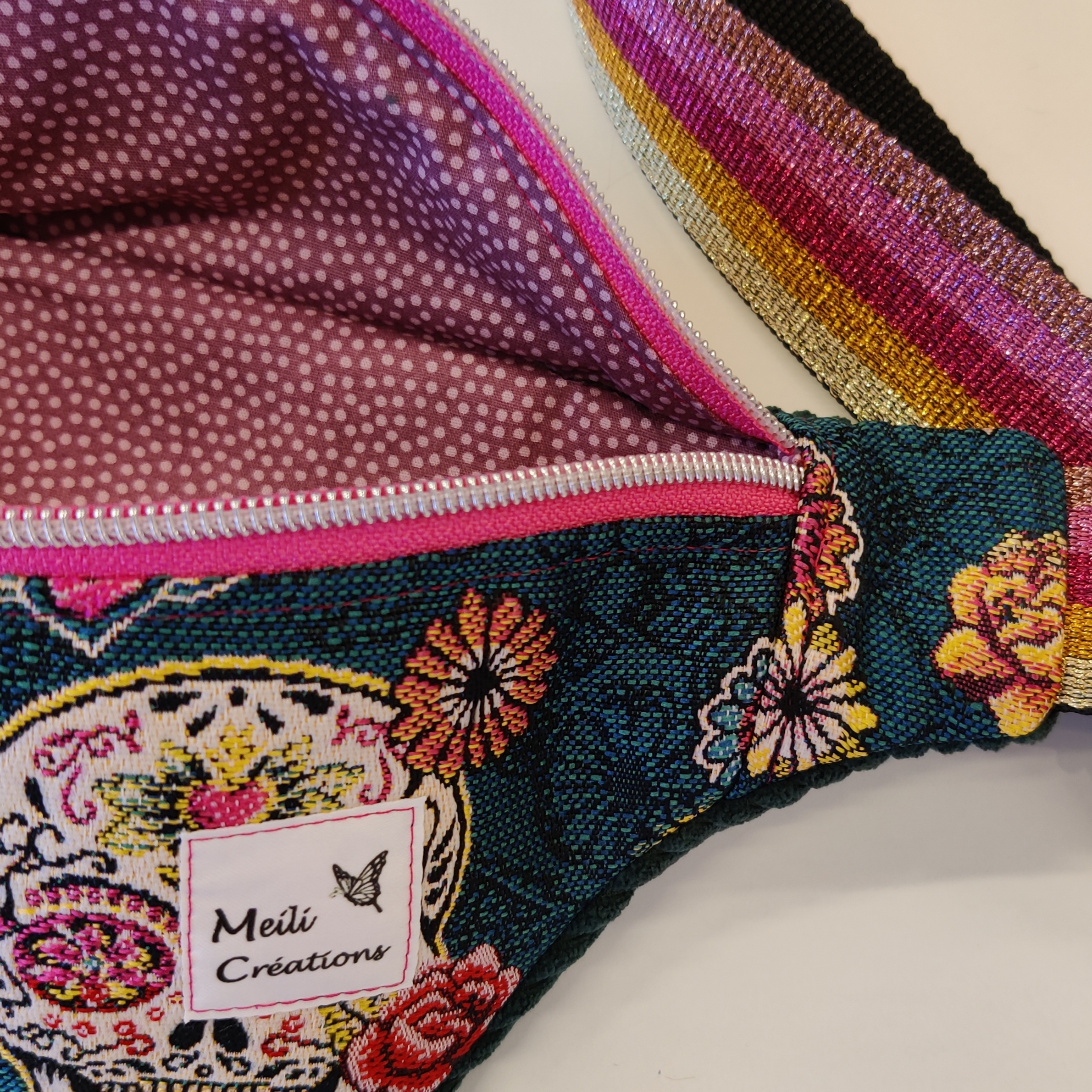 Chaque modèle est confectionné artisanalement dans mon atelier, garantissant un accessoire unique et durable. Le tissu jacquard apportent élégance et modernité.